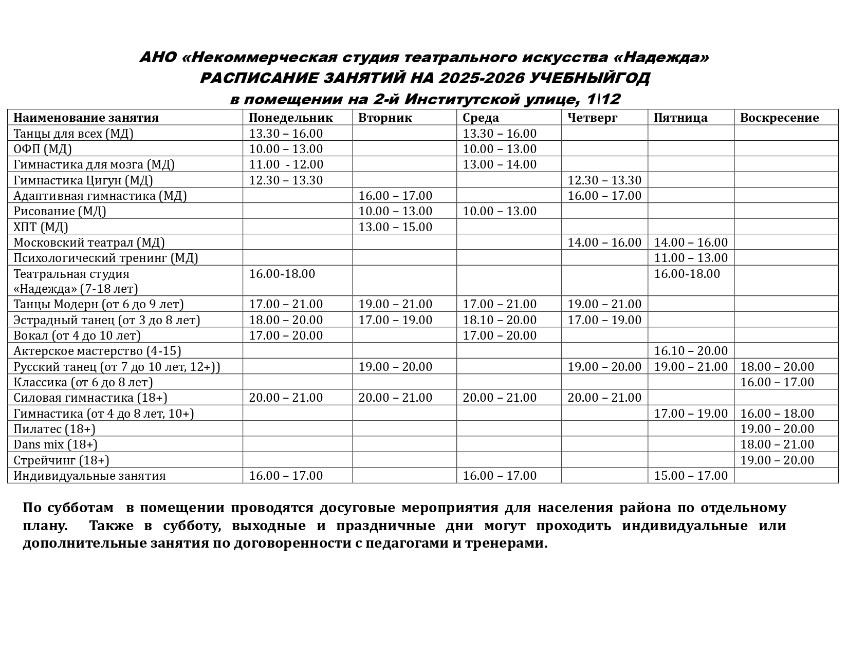 Расписание